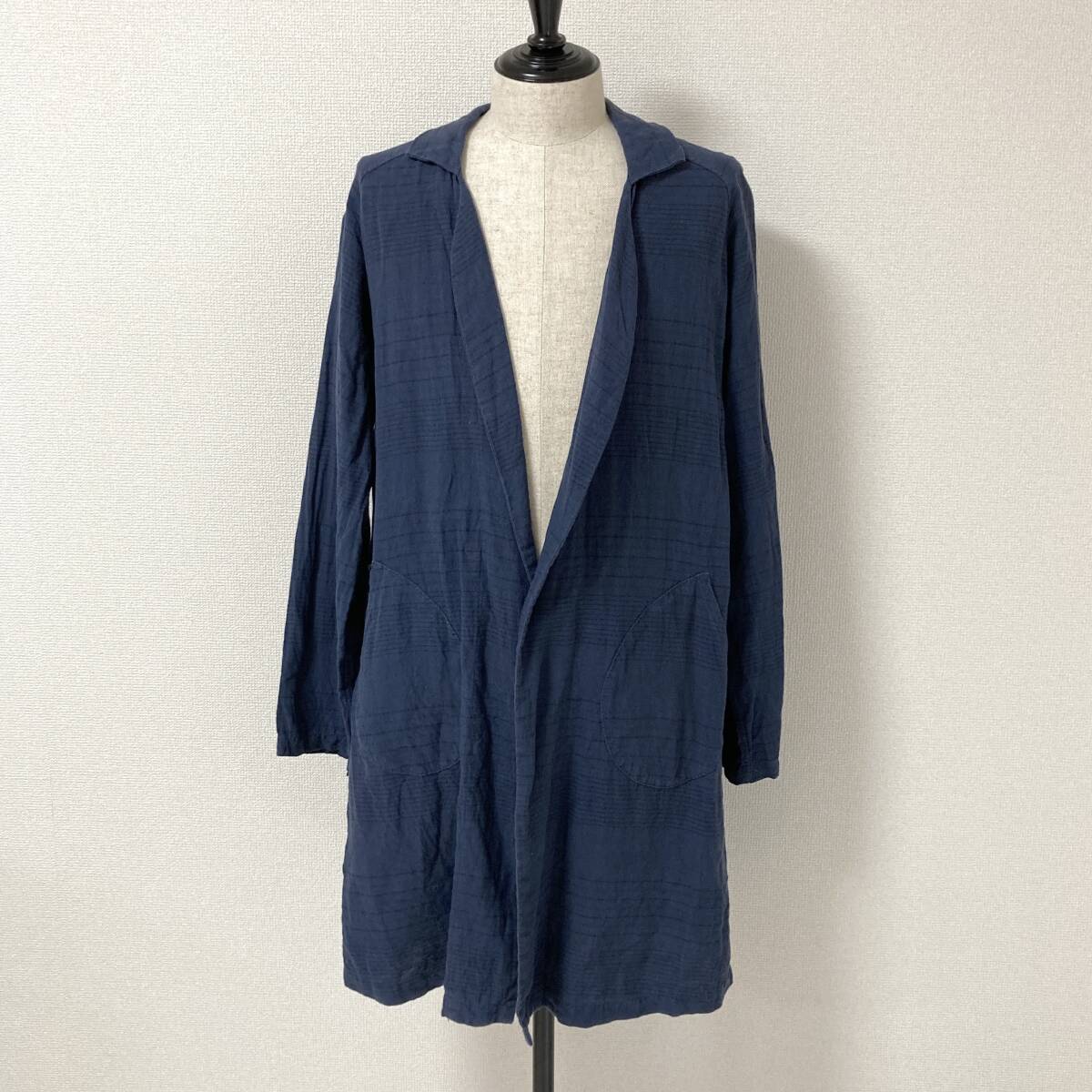 - ORGUEIL リネン ガウン コート ネイビー 紺 38サイズ OR-4104B オルゲイユ シャツ 羽織り STUDIO D'ARTISAN ダルチザン 4020338