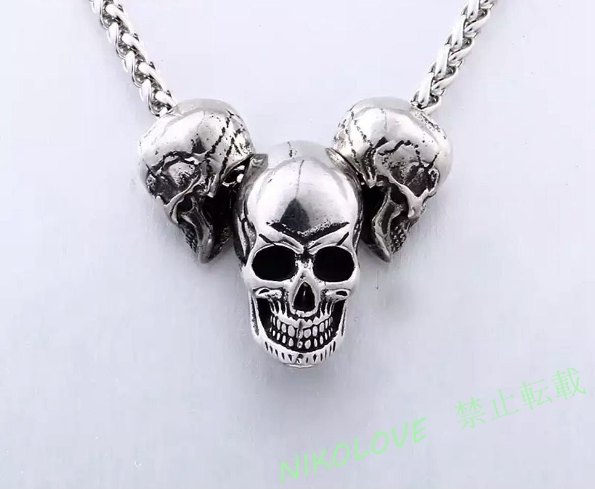 - 新品 全2種類 種類選択 チェーン付き髑髏ネックレス 鎖 髑髏 ガイコツ 頭蓋骨 アクセサリー ペンダント ネックレス レザー チェーン LA700