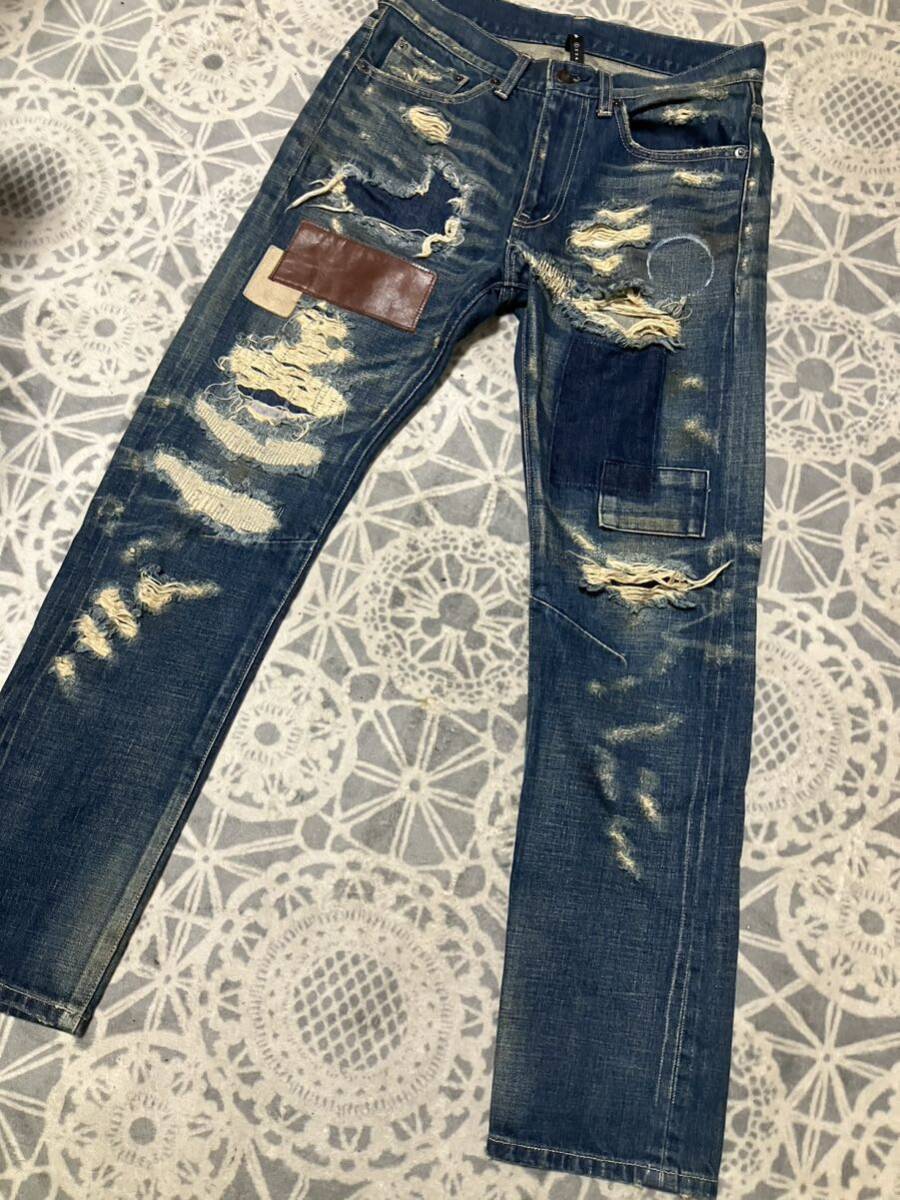 - glamb アンプラグドデニム インディゴ パッチワーク ハードダメージデニム