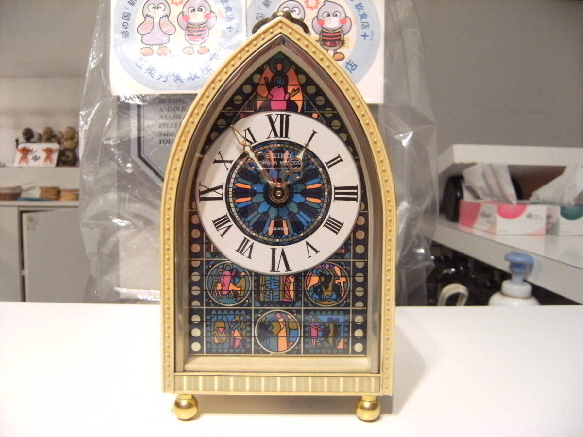 - 稼働品★昭和レトロ★80年代★日本製★当時物 SEIKO CORONA MELODIA 2JEWELS セイコー オルゴール 目覚まし時計 置き時計★教会 峠の我が家
