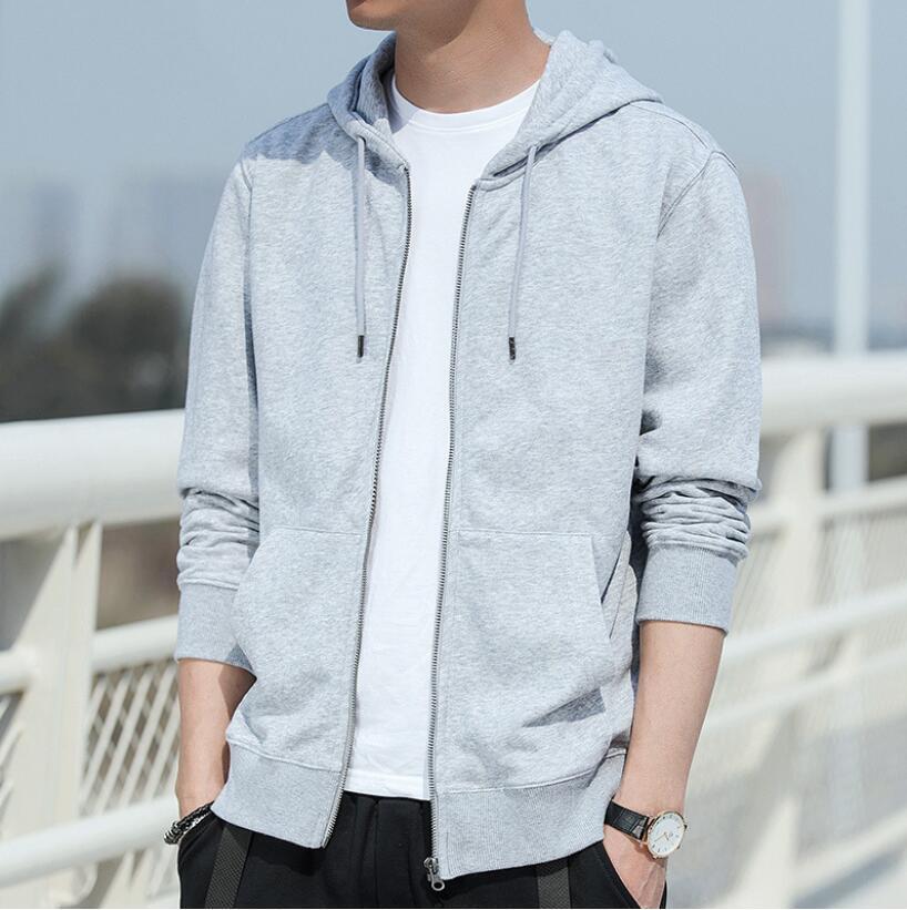 - 新品 カジュアル メンズ パーカー メンズ 前開き 薄手 春 ジップアップパーカー フード付き カーディガン 長袖 / グレー