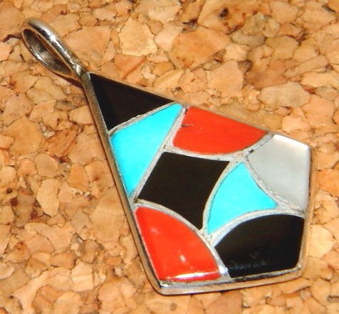 本物 2000年代前期 ZUNI族 ズニ族 インディアンジュエリー シルバー製 天然石 インレイ ペンダント ターコイズ コーラル オニキス シェル