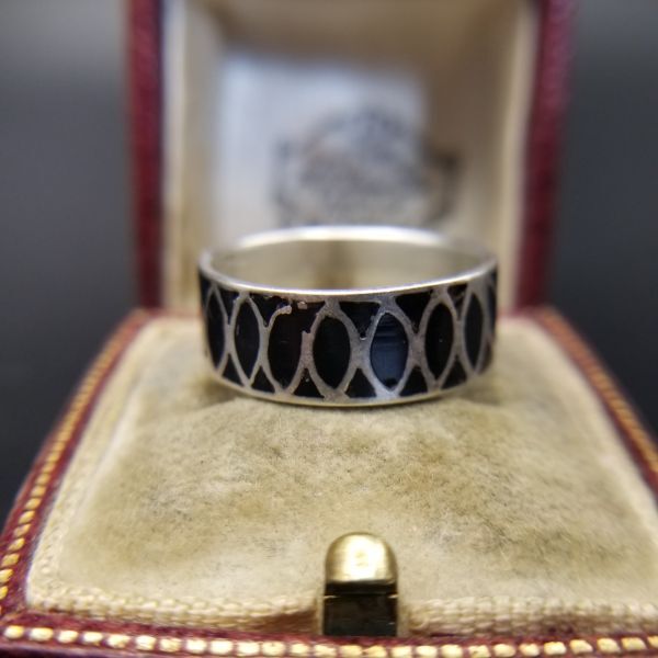 - アールデコ オニキス インレイ モダニズム 925 シルバー ヴィンテージ バンドリング 銀 指輪 中太 黒石 メンズジュエリー YDI①
