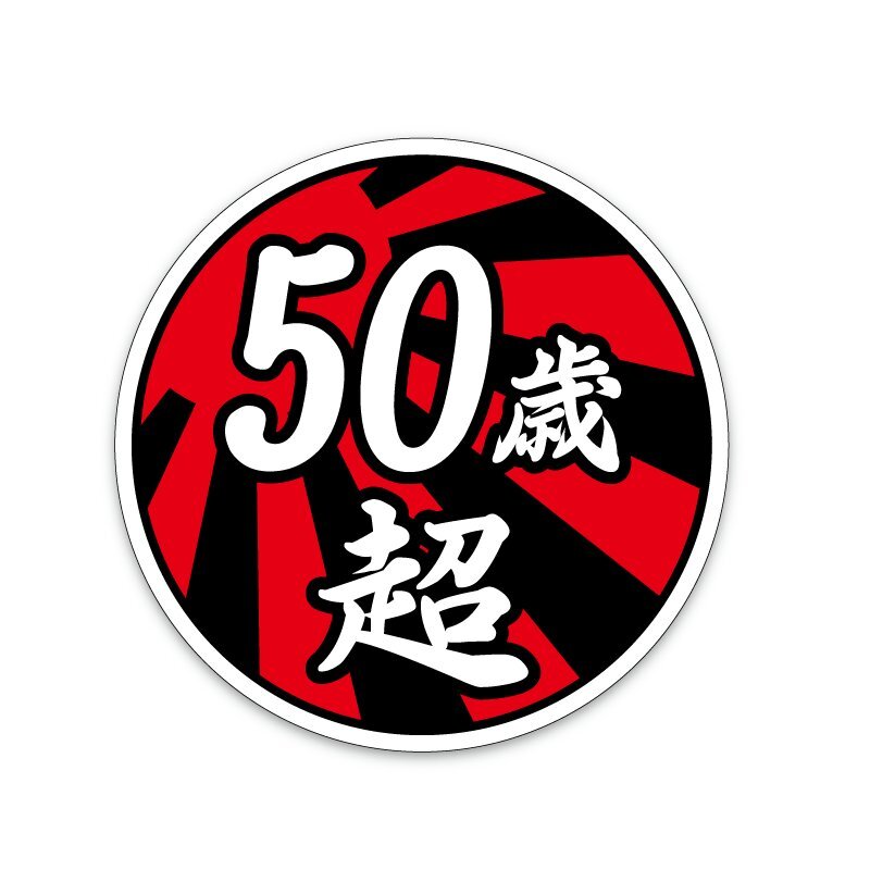 - 面白ステッカー 50歳超え 日章 9cm丸 ネタ おもしろ パロディ