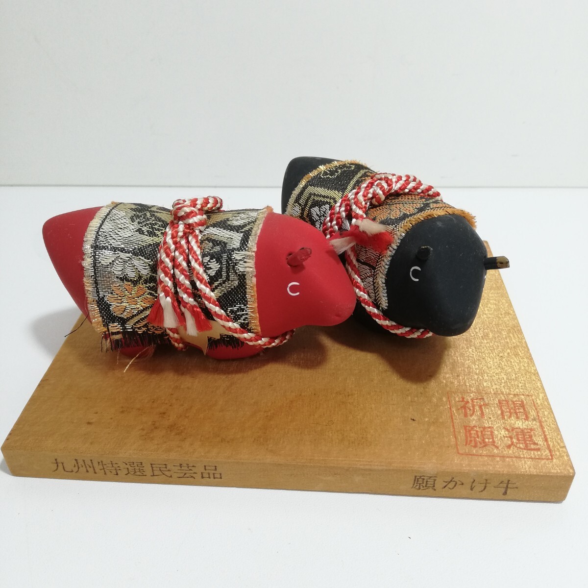 - 九州特選民芸品 願かけ牛 置物 15cm×12cm [赤牛 黒牛 開運祈願 郷土玩具 日本人形 レトロ ビンテージ 民芸品 日本美術 ]