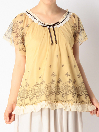 - 323◇刺繍風プリントPO イエロー 黄 axes femme アクシーズ ファム PS25X141 半袖 プルオーバー
