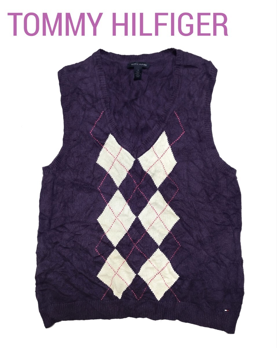 > 【良品】TOMMY HILFIGER(トミーヒルフィガー)メンズニットベスト M