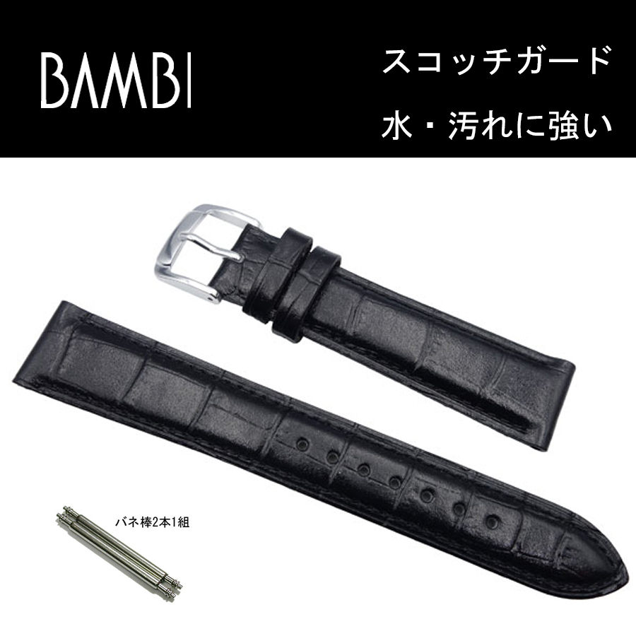 - [バネ棒付] 19mm バンビ カーフ型押 BKME051AR 黒 スコッチガード 時計ベルト 新品未使用正規品 送料無料