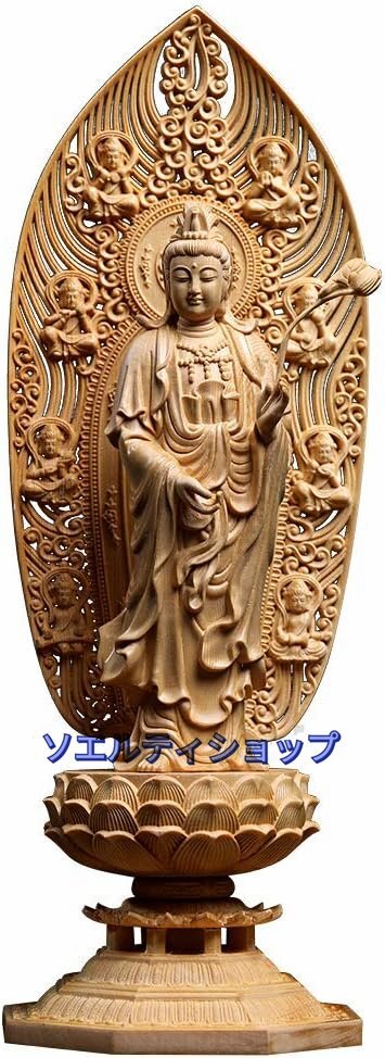 - 仏像 阿弥陀三尊 勢至菩薩 仏壇仏像 祈る 厄除け 桧木製 守り本尊 大きい蓮の花の台座
