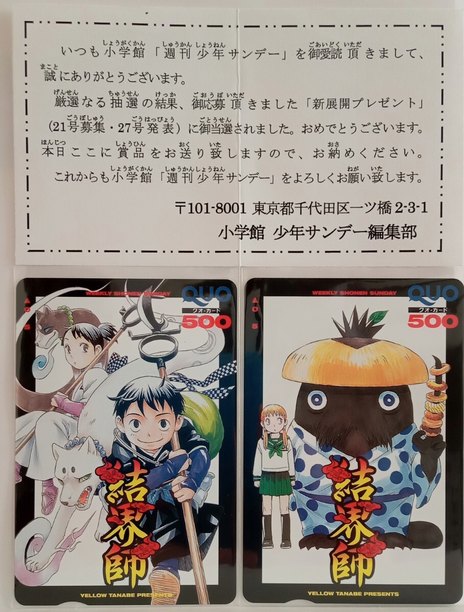 - 結界師/クオカード 2枚組/田辺イエロウ/少年サンデー/抽選プレゼント/ 当選品/QUOカード