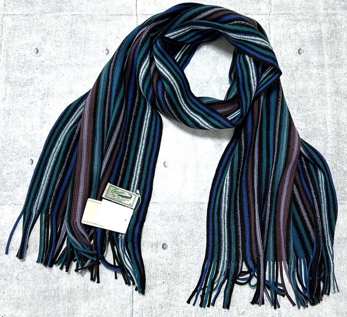 > 新品 定価4200円 Crocodile マルチストライプ マフラー アクリル クロコダイル 未使用品 メンズ フリンジ ニット 石瀬6006