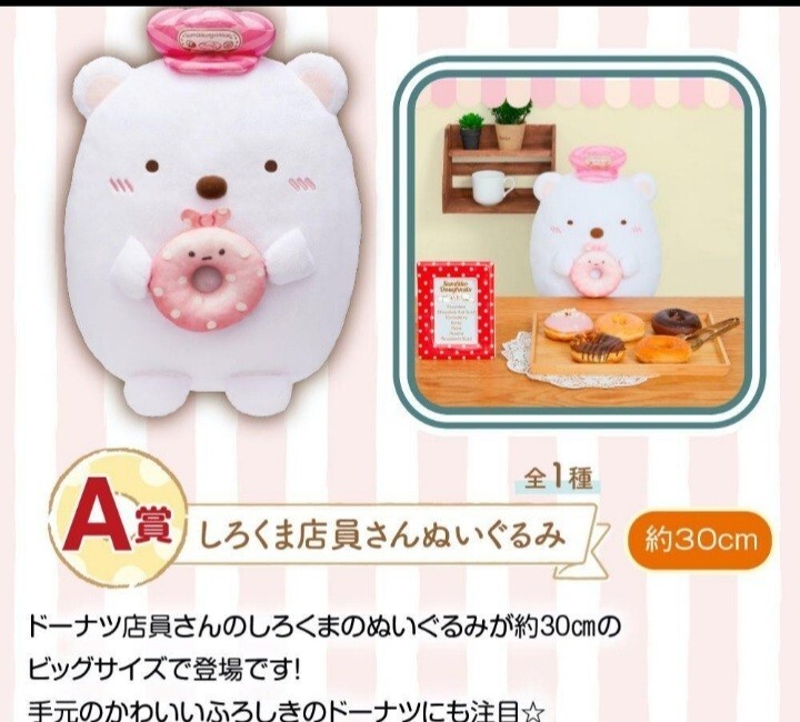 - 美品 すみっコぐらし 一番くじ 〜すみっコのスイーツタイム〜 A賞 ぬいぐるみ サンリオ しろくま店員さんぬいぐるみ クマ