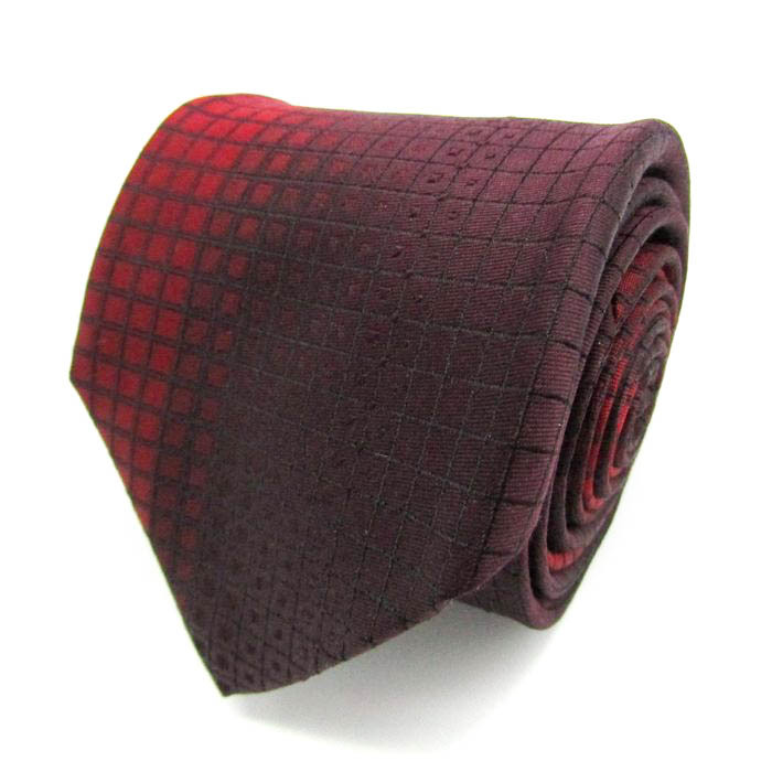 - ダナキャラン ブランド ネクタイ 総柄 チェック柄 シルク 日本製 PO メンズ レッド Donna Karan