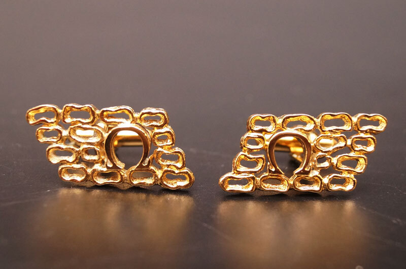 - yh63-OMEGA オメガ カフス ゴールド 立体 ロゴ カフリンクス くり抜き オープンボタン アンティーク