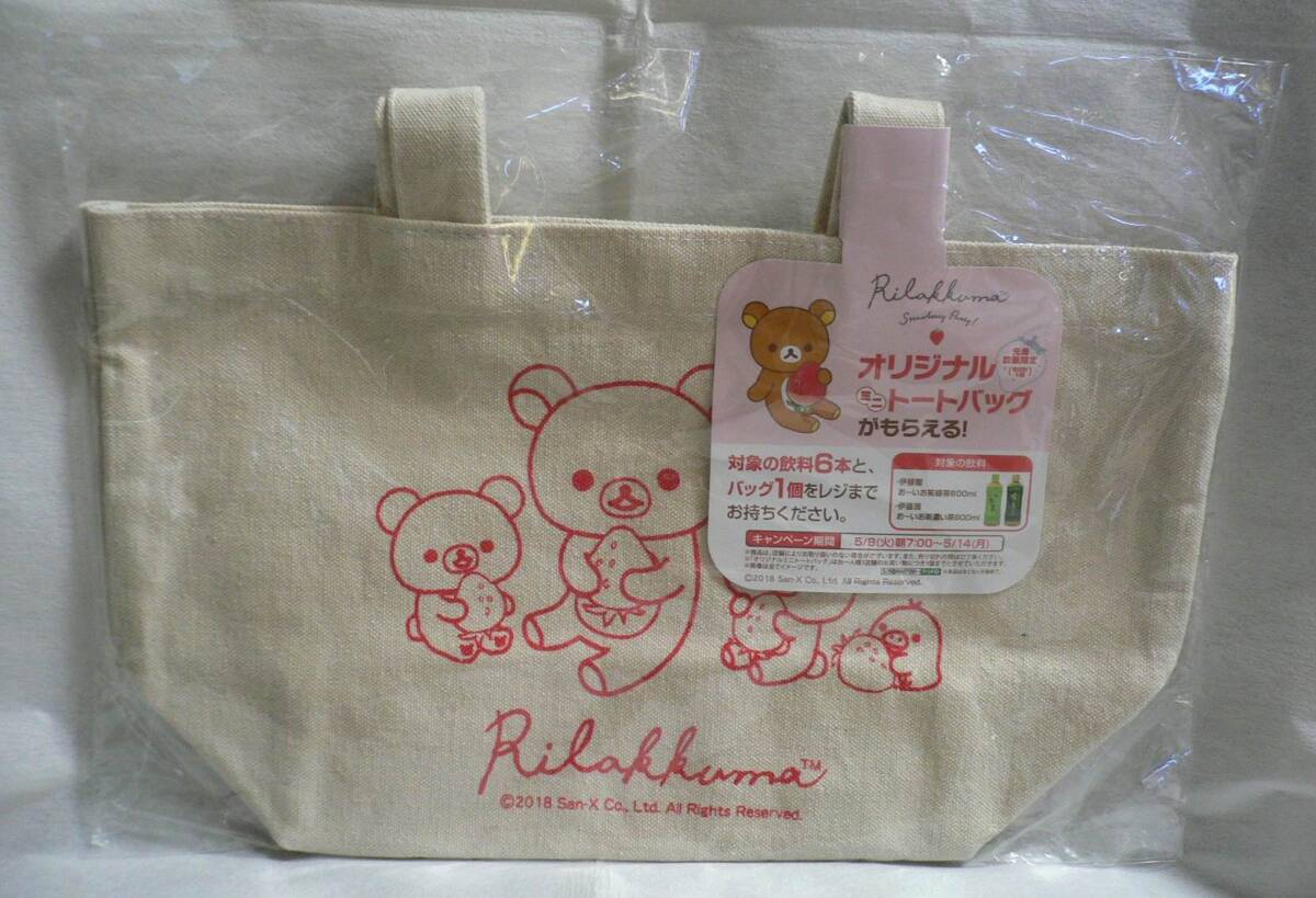 - ローソン リラックマ オリジナル ミニトートバッグ 伊藤園 エコバッグ いちご柄 San-X ランチバッグ