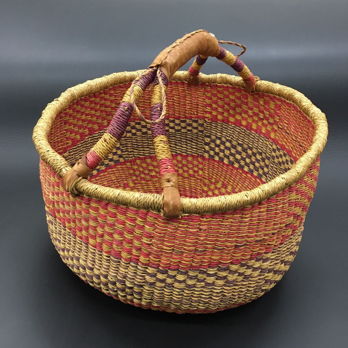 - ブルキナバスケット 手織り 編み籠バッグ 直径約40cm 深さ約25cm