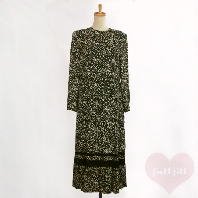 - ワンピース 古着 昭和 レトロ ロング 長袖 モノトーン レース使い 80s ビンテージ ヴィンテージ vintage レディース古着 used クラシカル