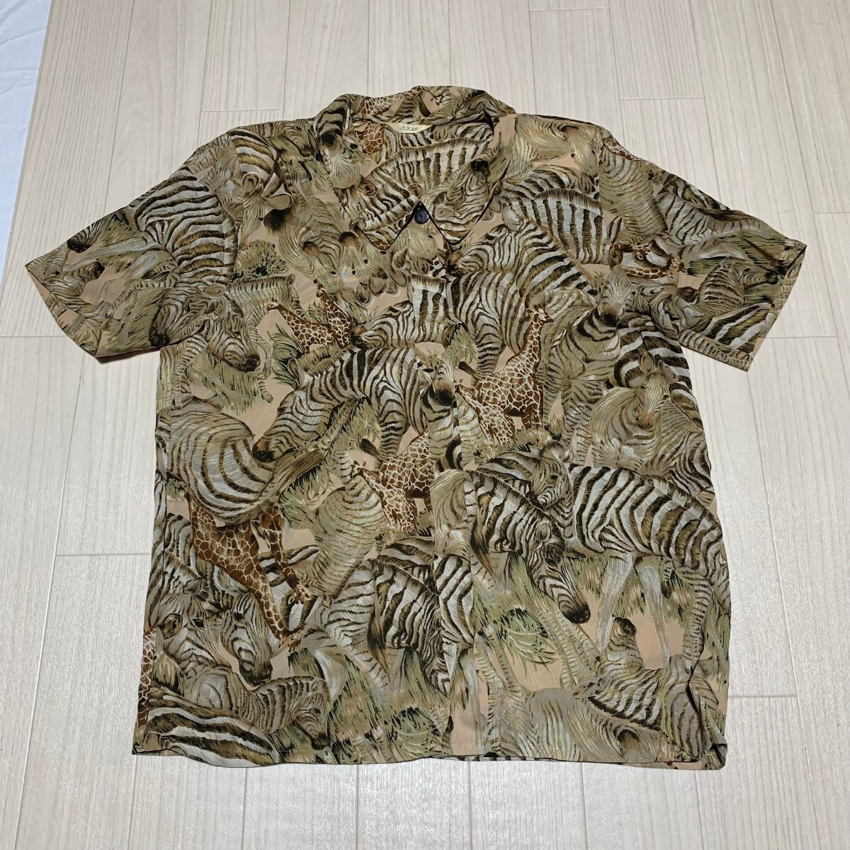 - CESSORIE セサリー 半袖シャツ 肩パッド ゼブラ・サファリ柄 レーヨン 総柄 ベージュ サイズM ヴィンテージ