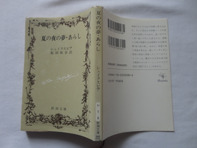 - 新潮文庫『夏の夜の夢・あらし』シェイクスピア 平成4年 新潮社