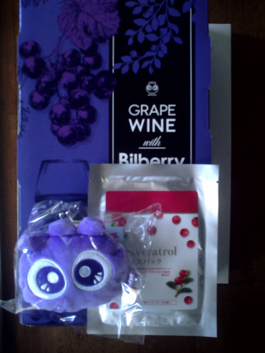 - わかさ生活 ビルベリー果汁入りワイン750ml+がま口ポーチ+フェイスパック計3点セット