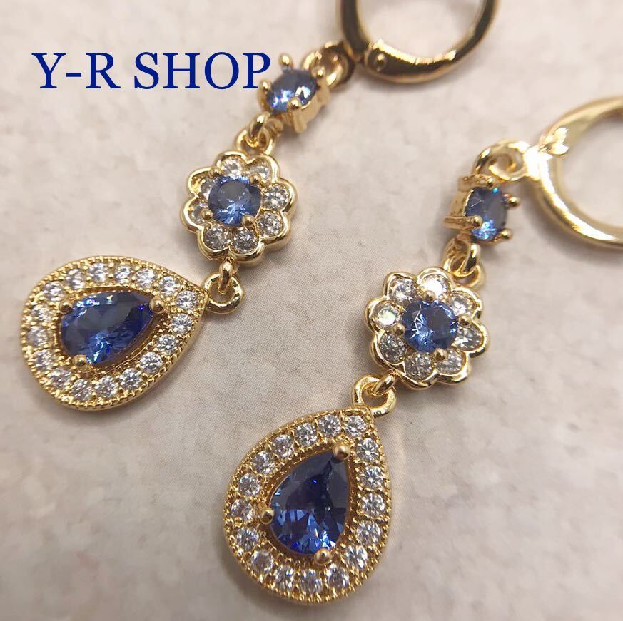 > タンザナイトのお花デザインゆらゆらピアス★レディースゴールドアクセサリーキュービックジルコニア ゴージャス新品宝石Y-R
