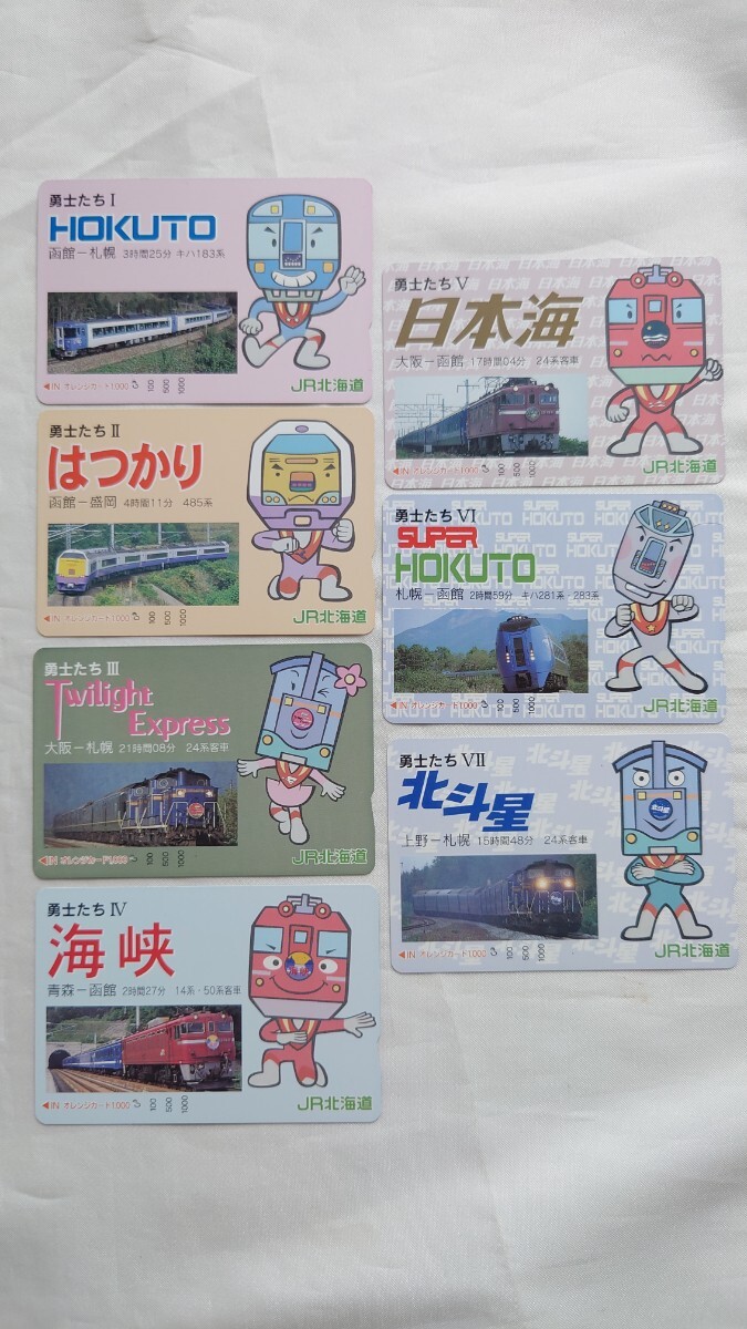 - △JR北海道△勇士たち1-7 キハ183系北斗/485系はつかりほか△記念オレンジカード1穴使用済7枚一括