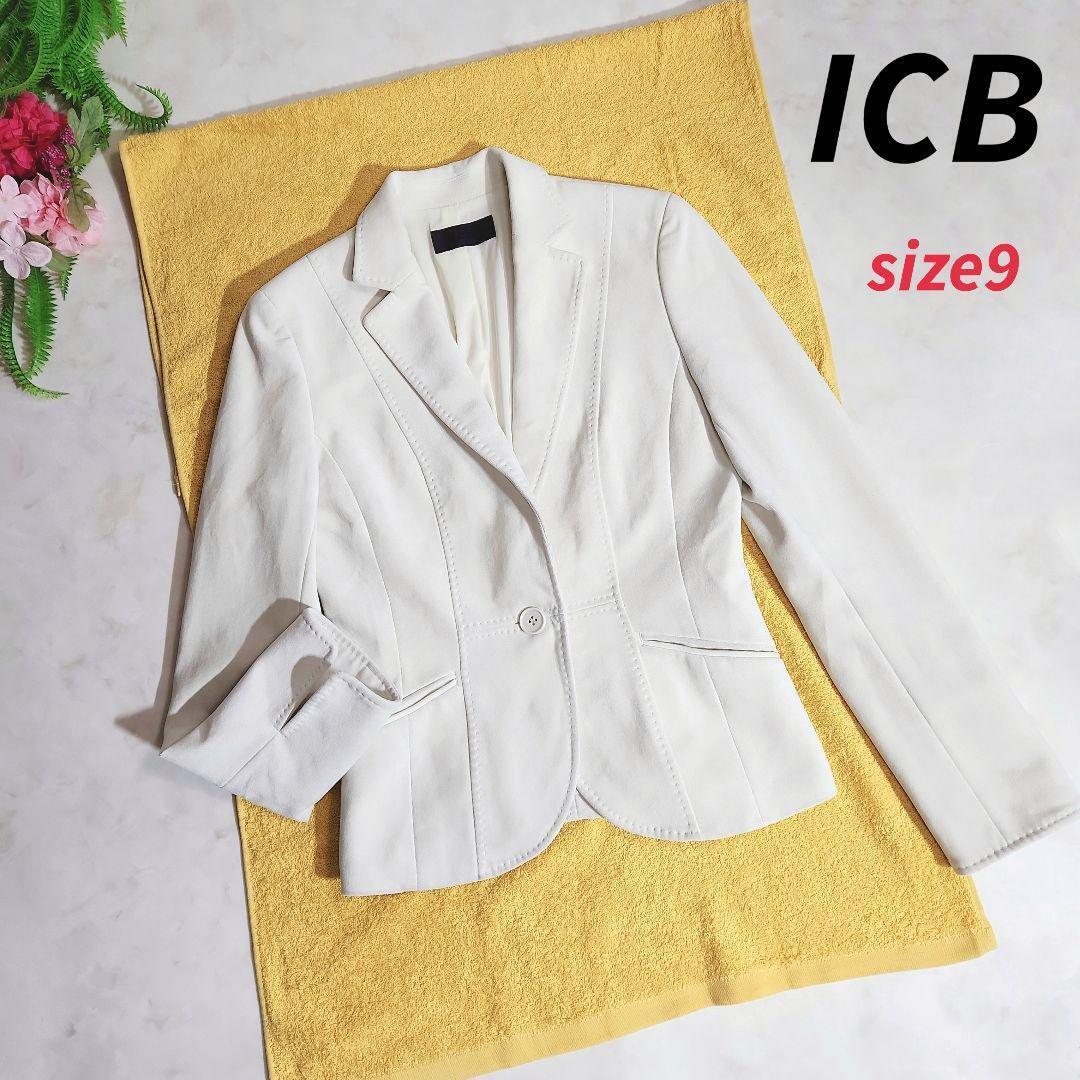- オンワード樫山 ICB ベロア風・秋冬向け・テーラードジャケット 表記サイズ9 M アイボリー系 82762