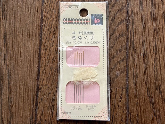 - サンコッコー 絹針 薄地用 きぬくけ 長さ 45.5㎜/太さ 0.56㎜ 5本 縫い針 昭和 当時物 送料無料 底値