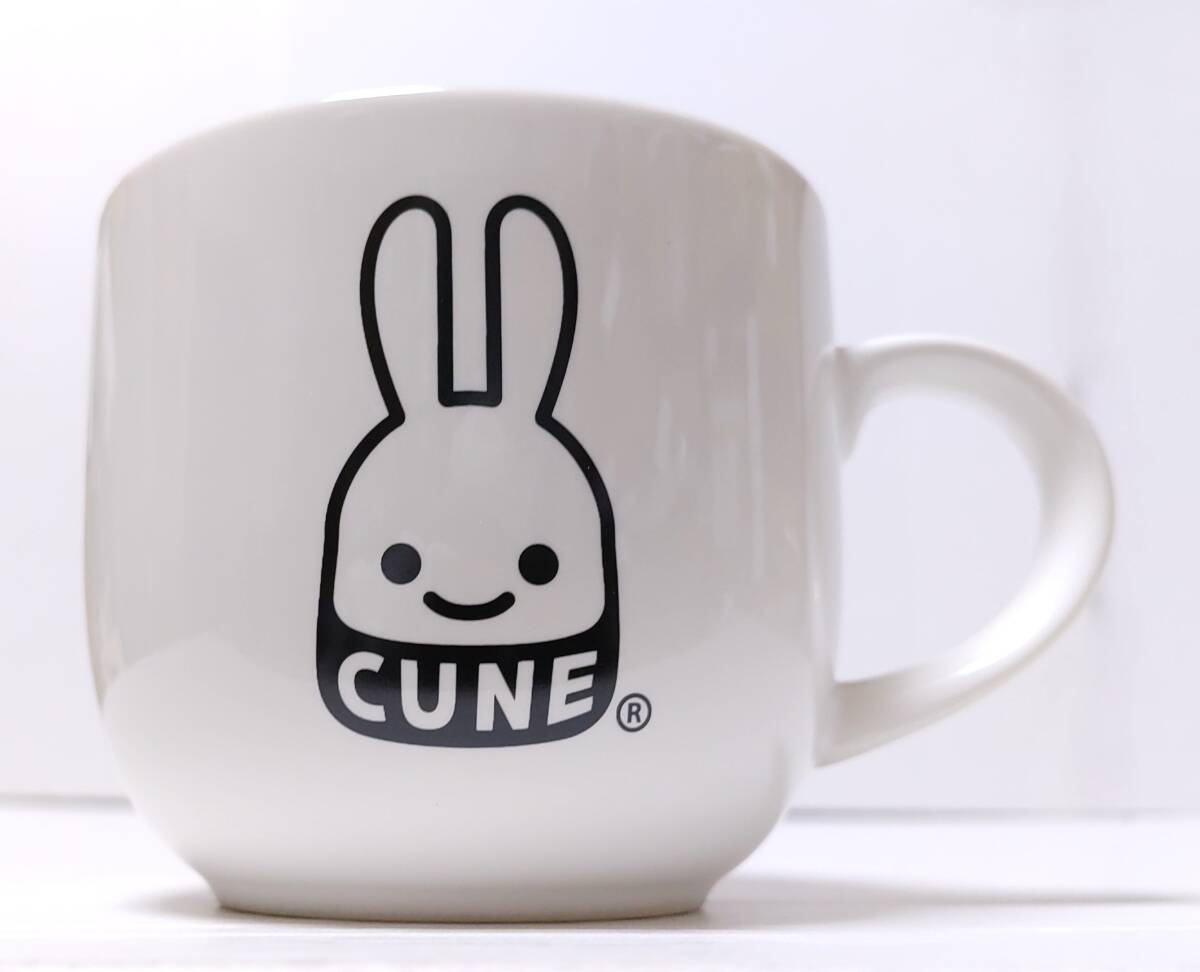 - 2019 R底 日本製 CUNE 2倍キャンペーン『1倍 マグカップ』磁器 白 二面プリント CUNEウサギ 約タテ8×ヨコ8.5cm 箱付き※未使用品/タグ付き