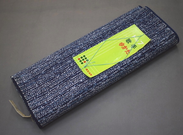 - A16-15【凛々】即決 新古品 本染 ゆかた反物 紺 横段 未仕立て品