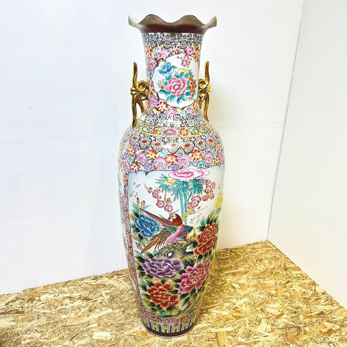 - 中国美術? 特大花瓶 景徳鎮? 孔雀 装飾壷 金彩 041902/SL2