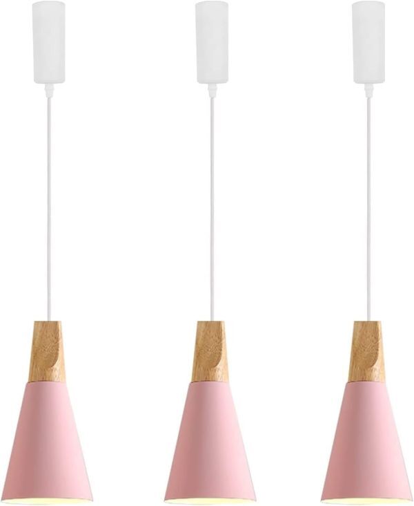 > ケビン 3個入 ペンダントライト 長さ調節可 コード収納カップ付き インテリア照明 北欧 ペンダントランプ 吊り下げ ライト E26【ピンク】