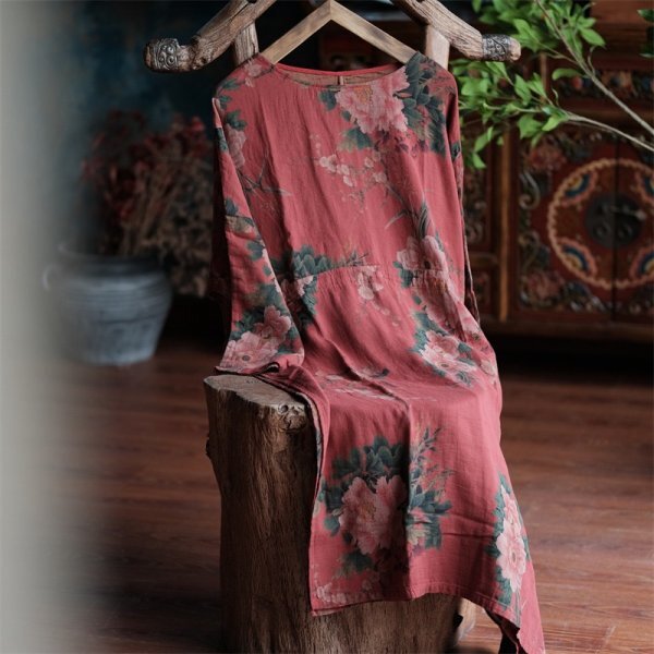 - lgn 1510 ロングワンピース チュニック アンティーク風 洋服ミックス ロマンファッション 花柄 綿100%コットン