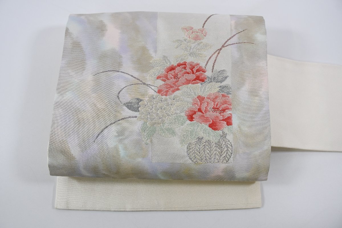 - 名古屋帯 秋草 花 帯丈364cm ★着物屋 ne-9606 桜庭呉服店