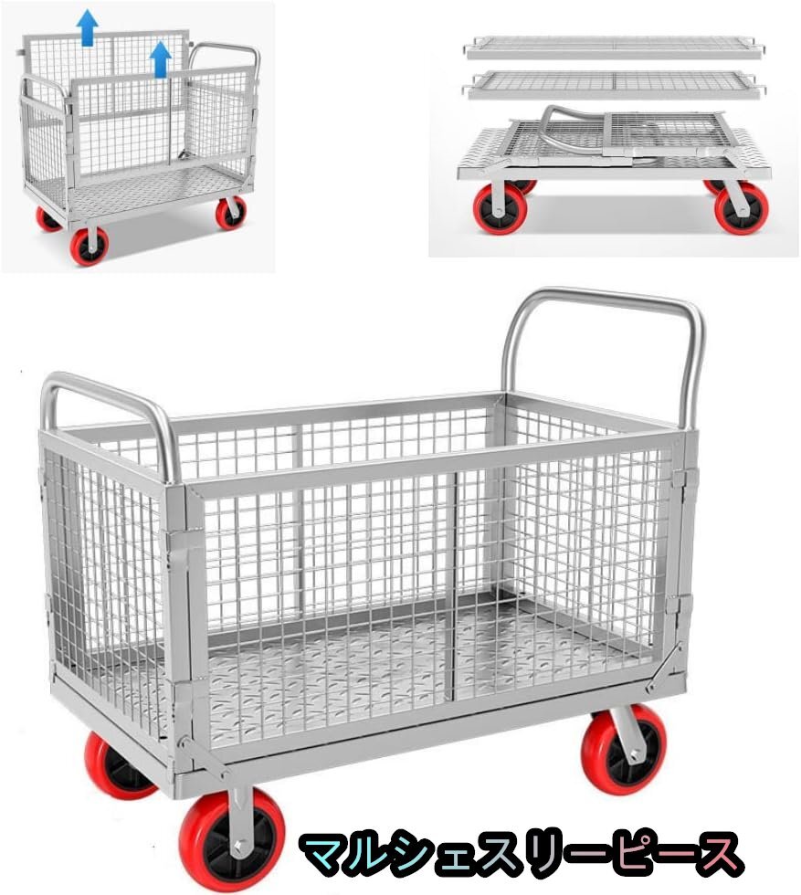 - 台車 カゴ台車 バスケット台車 荷重500kg メッシュ台車 ブレーキ付き 静音台車 両袖金網付 運搬車 6インチキャスター (1台)