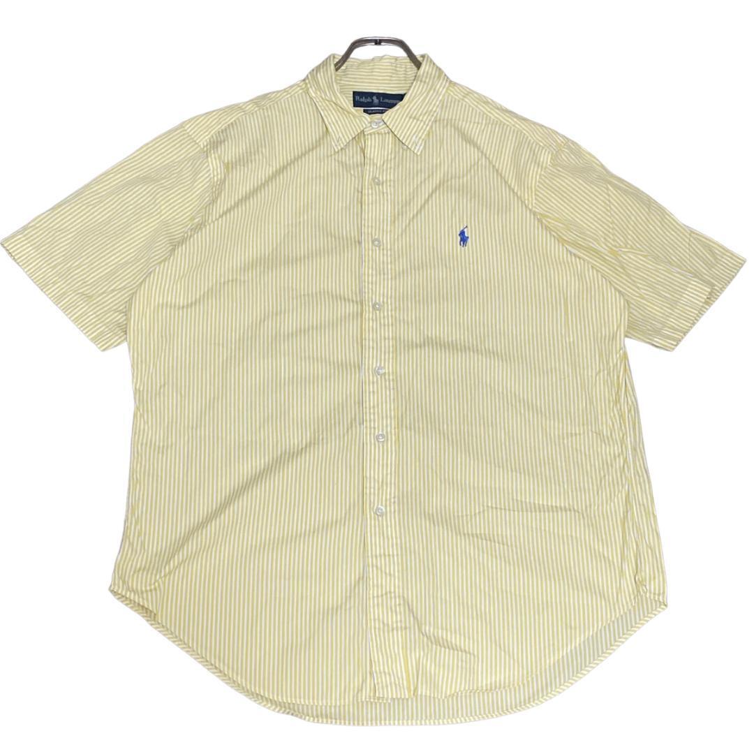 - ラルフローレン BD半袖シャツ イエローストライプ ポニー刺繍 US古着f64 XL相当