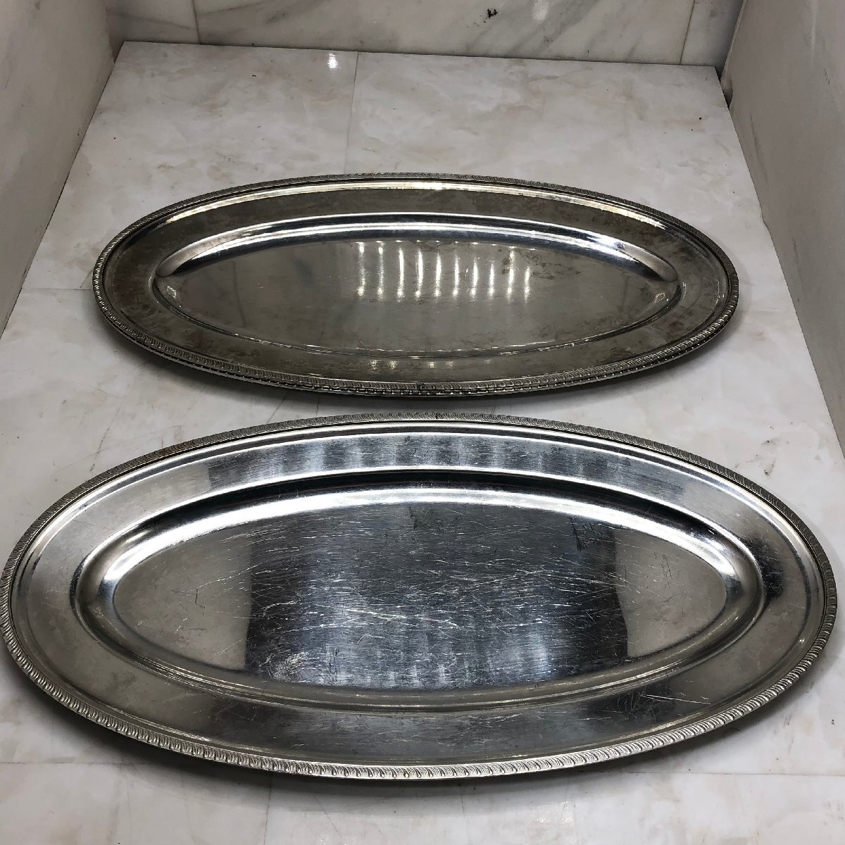 - √OG√ 【3枚】 ステンレス製 小判皿 中古品 W610×D310 バイキング ホテル 業務用 バイキング皿 ビュッフェ オードブル √Z-240504