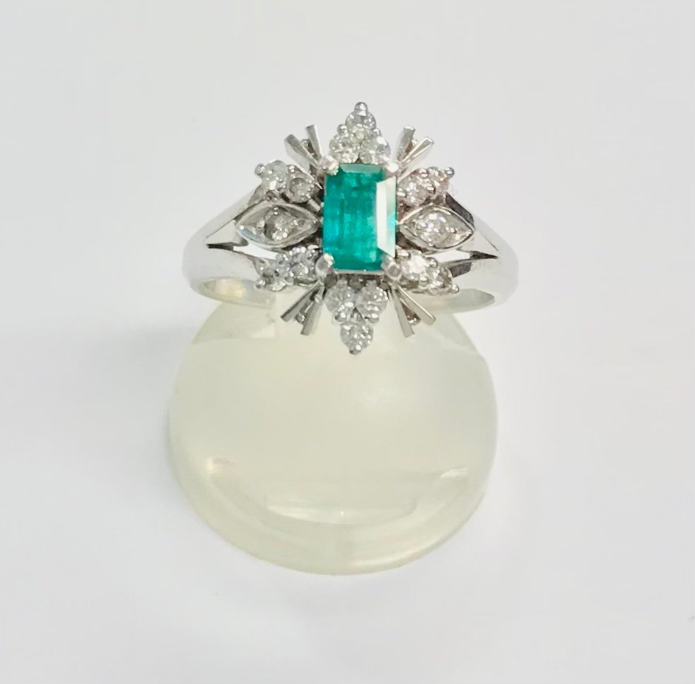 - PT900 プラチナ エメラルド ダイヤリング E0.35ct/D0.32ct 12号 qoj.YRU09