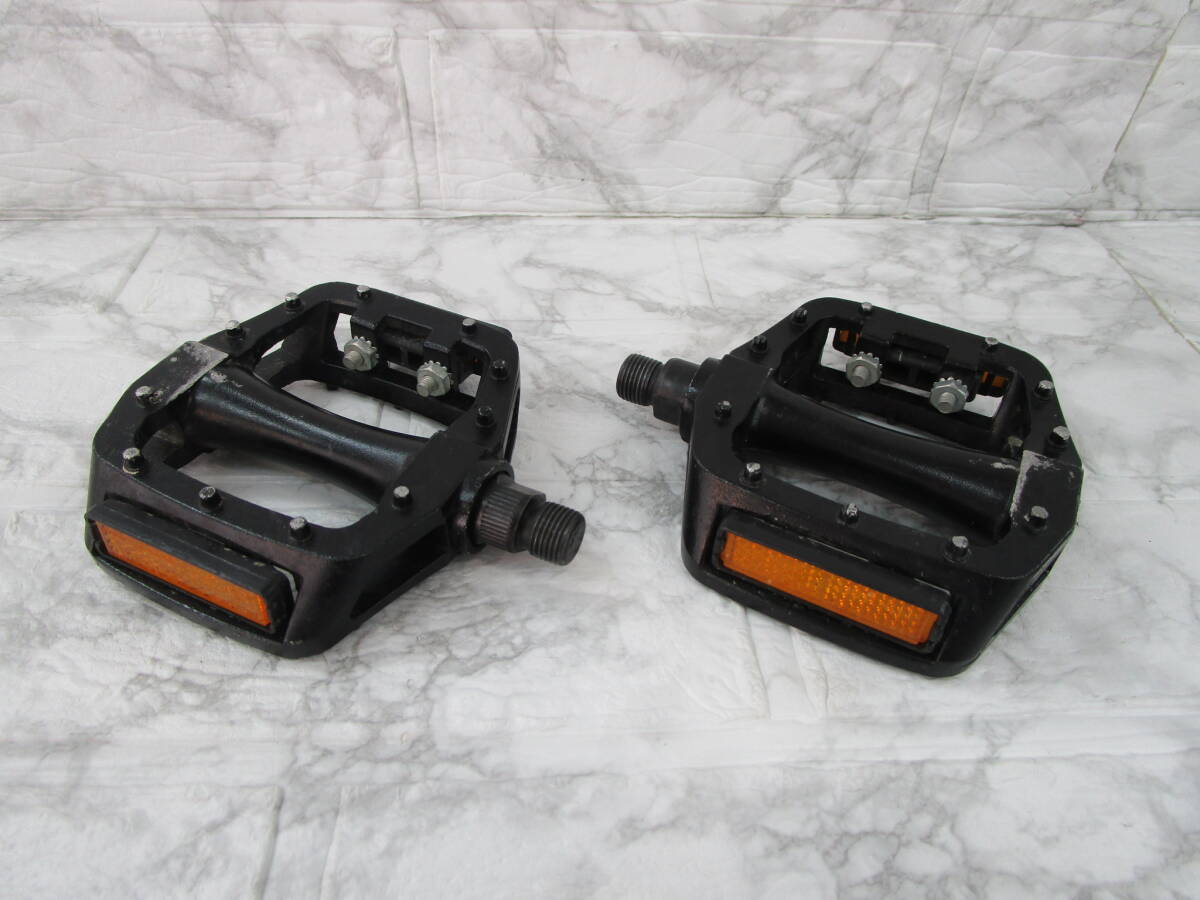 - W.24.E.14 TO ★送料230円定額☆ フラットペダル メーカー不明 ブラック ペア USED ☆