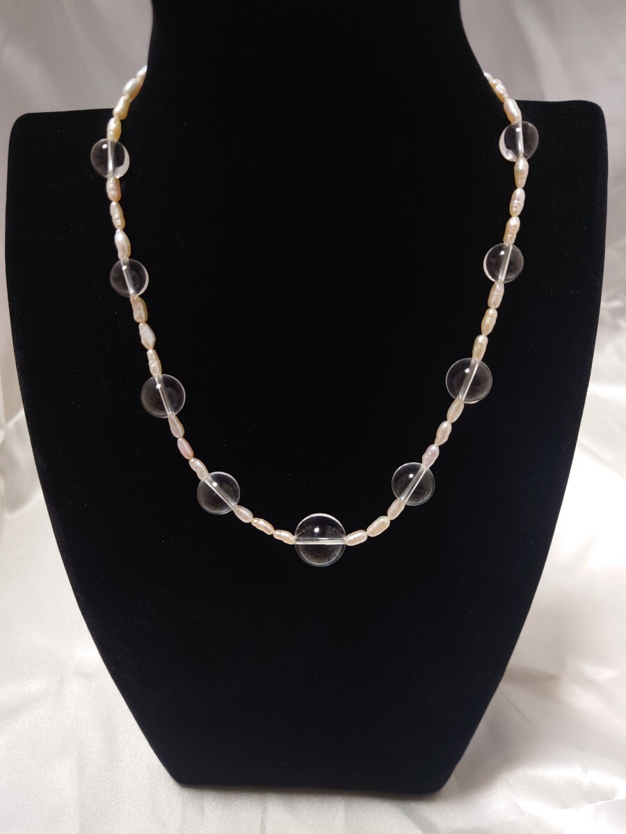 > 淡水真珠 水晶 メノウ オリジナルデザインネックレス 淡水真珠ネックレス マグネット式 管理No.N-210