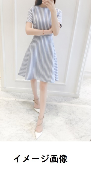 - nana56b-i-.[夏 カレッジ スタイル ストライプ ワンピース 半袖 ミドル 丈 ウエストスリム]