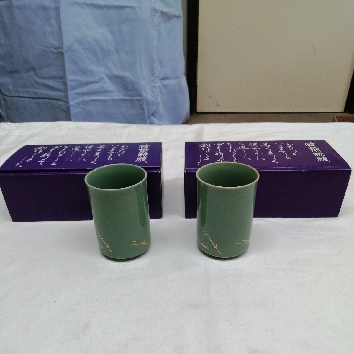 - 計6客 箱入未使用品 湯呑 緑 金 茶器