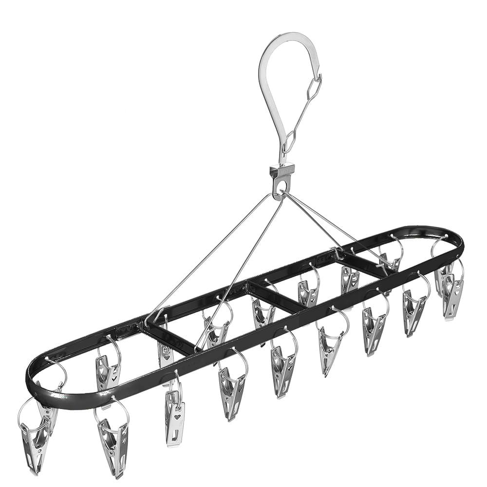 > ピンチハンガー 折りたたみ式 ステンレス製 ランドリー用品 [ ブラック / 大 ] 洗濯ばさみ 洗濯用品 洗濯グッズ