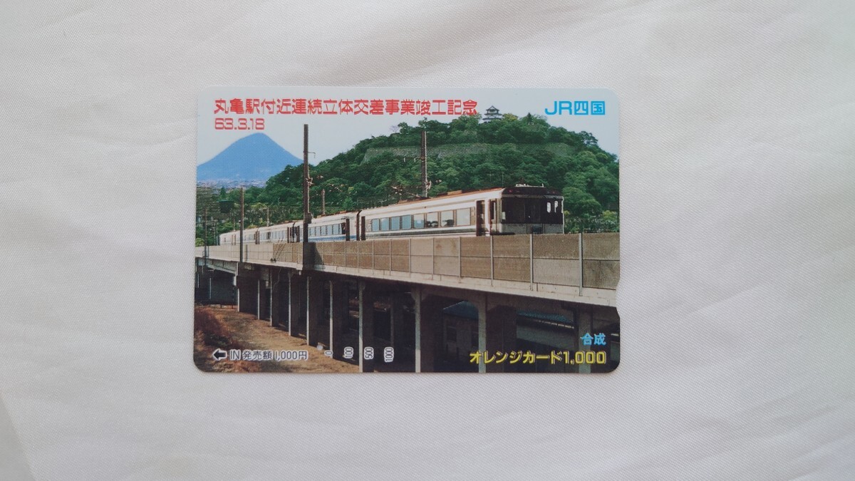 - ▽JR四国▽丸亀駅付近連続立体交差事業竣工記念▽記念オレンジカード1穴使用済