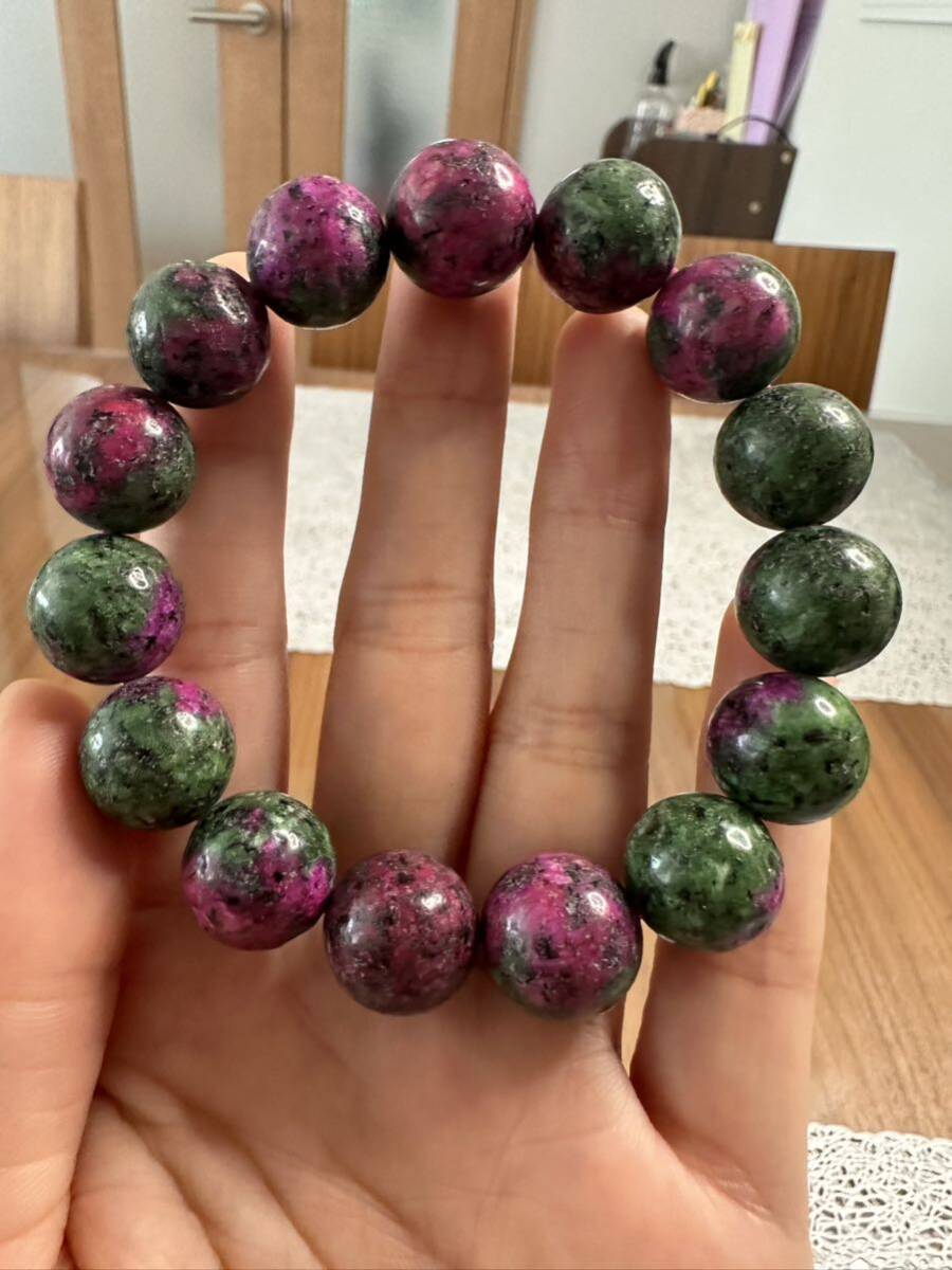 - V-772 【訳あり】天然石 ルビーインゾイサイト ブレスレット 癒し 14mm