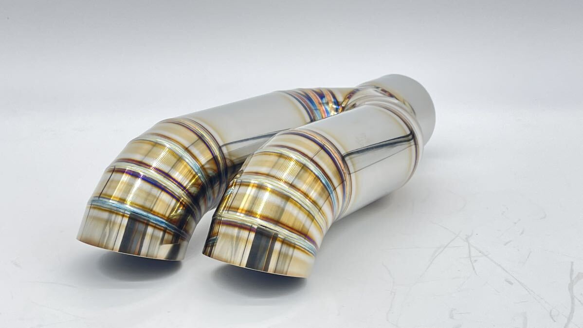 - ワンオフマフラー出口60.5φ入口内径60.5φジョイント差し込み ドルフィンテール ツインタイプ
