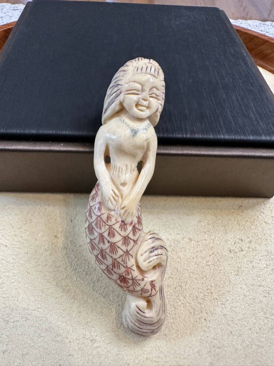 - V-782 天然 鹿の角 根付 美人魚手彫り ペンダント