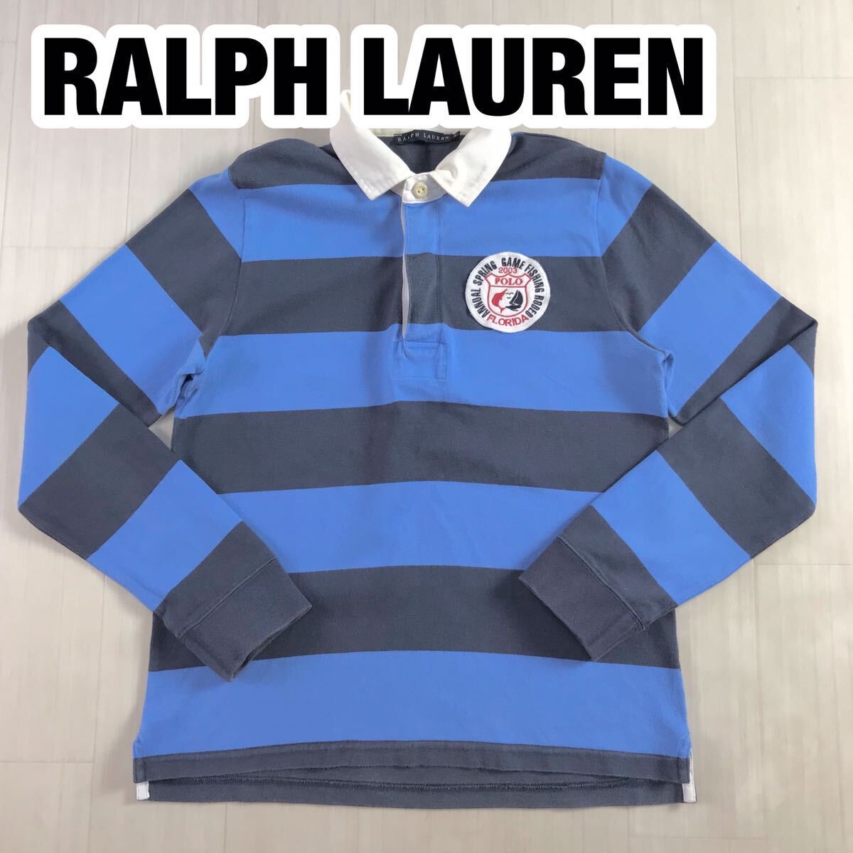 > RALPH LAUREN ラルフローレン ラガーシャツ L ボーダー柄 ネイビー×ブルー ワッペン