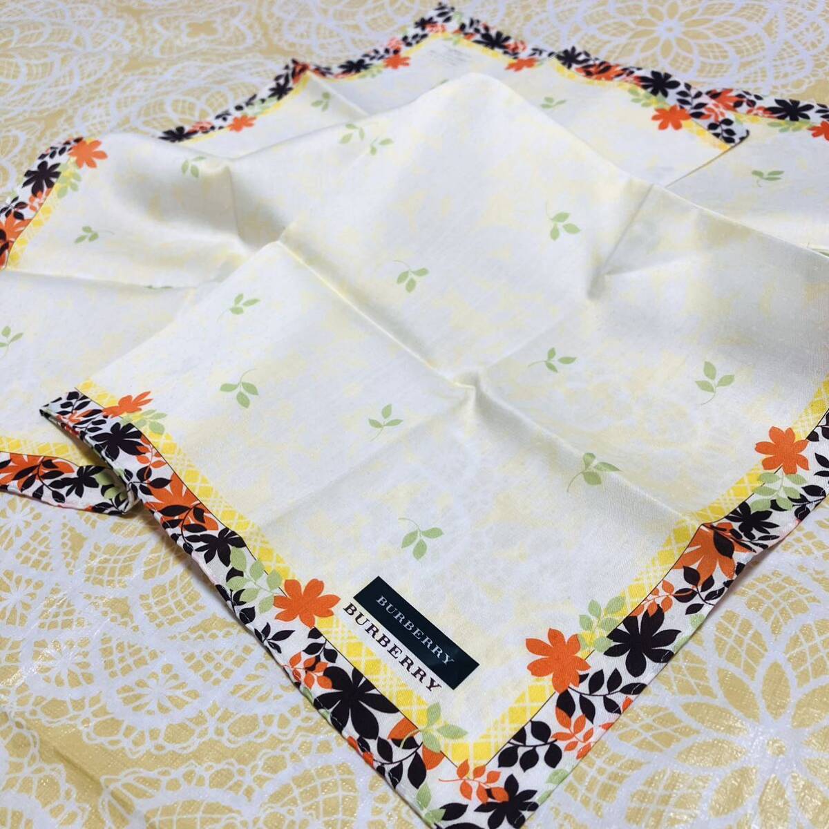 - 新品/BURBERRY/大判ハンカチ/正規品/バーバリー/綿100%/未使用ブランド/ノバチェック/レディース/花柄/黄色/オレンジ/女性用/ミニスカーフ
