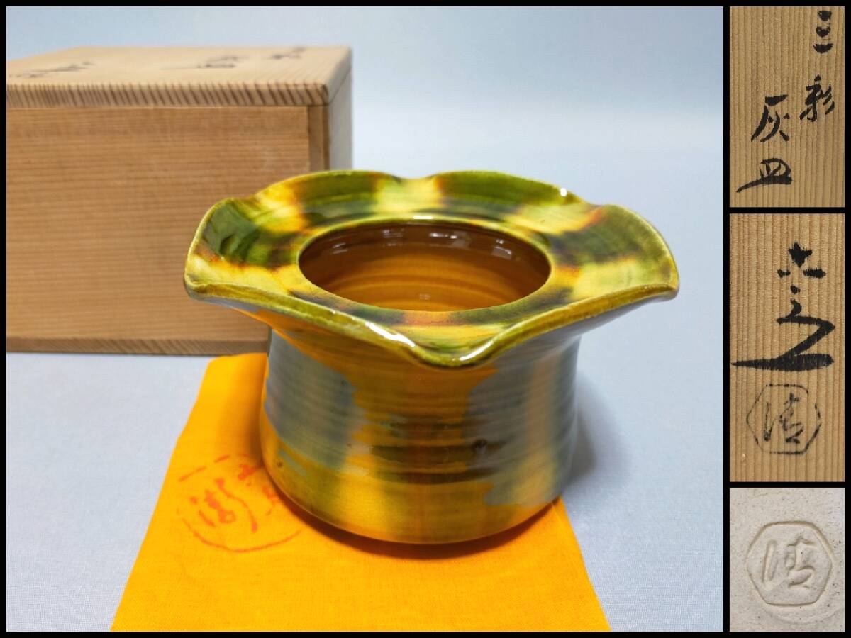 - AO22 京焼 灰皿 六代 清水六兵衛 作 三彩 共布・共箱 茶道具 喫煙具